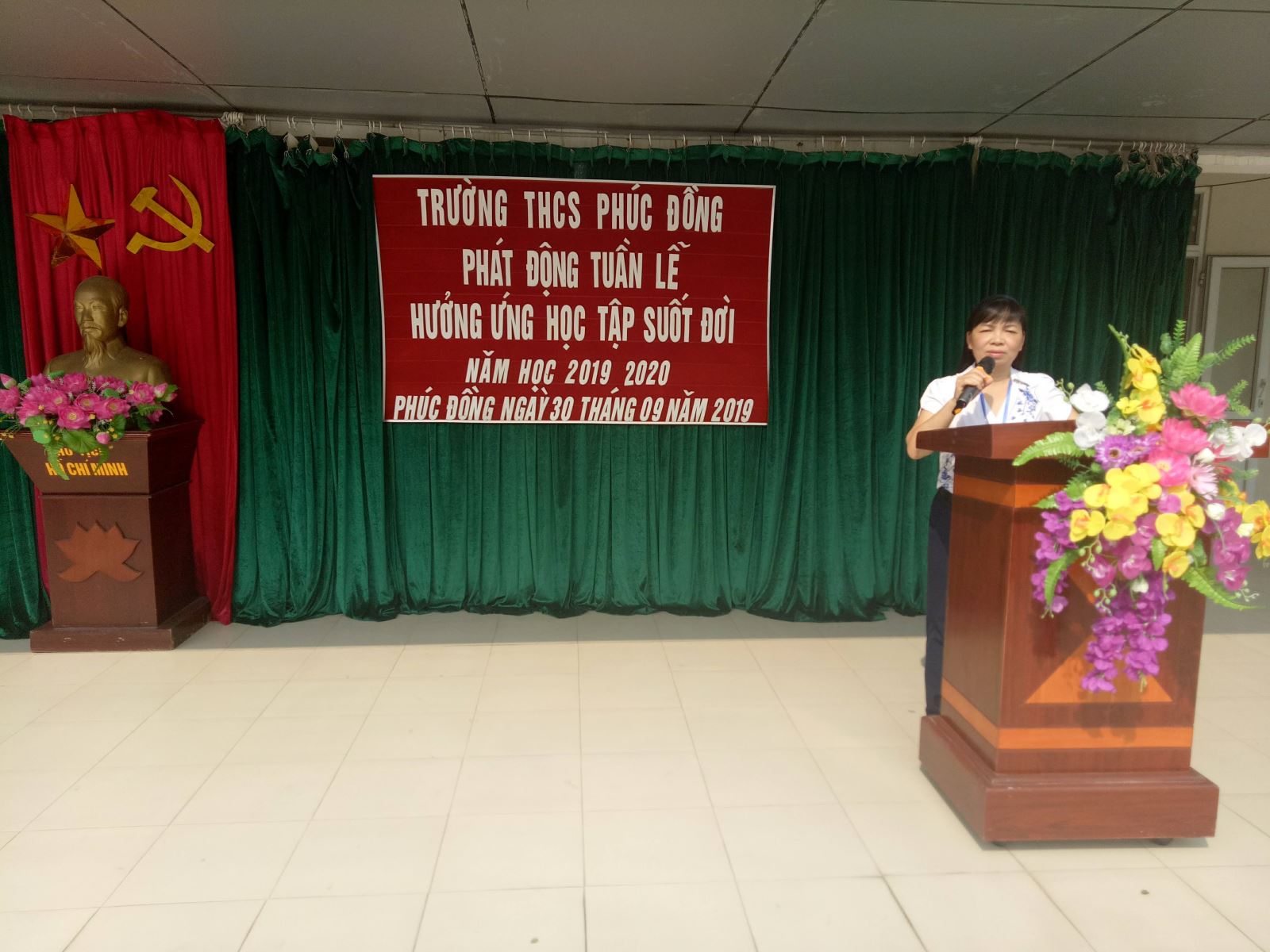 Tuần lễ hưởng ứng học tập suốt đời là hoạt động hằng năm, nhằm nâng cao nhận thức của các tầng lớp nhân dân về vai trò, ý nghĩa và sự cần thiết của việc học tập suốt đời, xây dựng xã hội học tập. Tuần lễ diễn ra tại trường THCS Phúc Đồng từ ngày 30/9-8/10/2019 với nhiều nội dung như: Phát thanh tuyên truyền về ý nghĩa của việc học, đọc sách, tổ chức trưng bày sách tại thư viện, tổ chức Ngày hội đọc sách, tọa đàm – trao đổi về việc học tập của mỗi cá nhân trong tiết sinh hoạt lớp, trao đổi, tham dự các chuyên đề nâng cao chuyên môn nghiệp vụ, tự học, tự bồi dưỡng của CB, GV, NV.