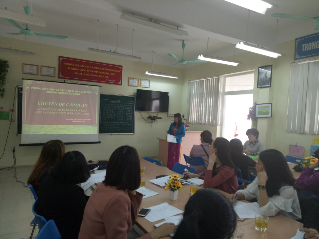 Chuyên đề có sự tham dự của đồng chí Nguyễn Đà Giang-chuyên viên PGD&ĐT Quận Long Biên, đông chí Võ Hương Lam-Hiệu trưởng trường THCS Phúc Đồng và các đồng chí cán bộ thư viện các trường Tiểu học và THCS trong Quận Long Biên.