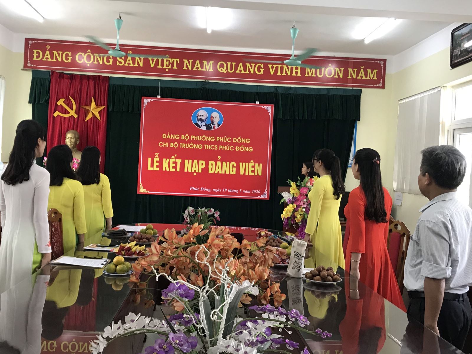 Sau khi trao quyết định kết nạp cho đồng chí Nguyễn Thu Huyền, đồng chí Võ Hương Lam - Bí thư Chi bộ, Hiệu trưởng nhà trường đã nêu rõ nhiệm vụ và quyền lợi của người đảng viên mới đối với đồng chí Nguyễn Thu Huyền cũng như giao nhiệm vụ của chi bộ Trường THCS Phúc Đồng và phân công đảng viên chính thức giúp đỡ, hướng dẫn đảng viên mới Nguyễn Thu Huyền trong thời gian dự bị.