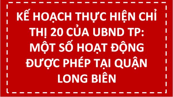 UBND quận Long Biê !important;n đã ban hành kế hoạch 324/KH-UBND ngày 04/9/2021, phương án 15/PA-UBND ngày 07/9/2021 về việc thực hiện Chỉ thị số 20/CT-UBND của UBND Thành phố Hà Nội, theo đó 14 phường trên địa bàn quận sẽ thực hiện phòng chống dịch theo các vùng và thời gian như sau: