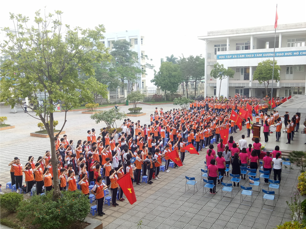 Về phía nhà trường có cô Võ Hương Lam– Bí thư chi bộ - Hiệu trưởng nhà trường – cùng toàn thể các đồng chí giáo viên, nhân viên và gần 500 em học sinh nhà trường cùng tham gia vào buổi lễ.