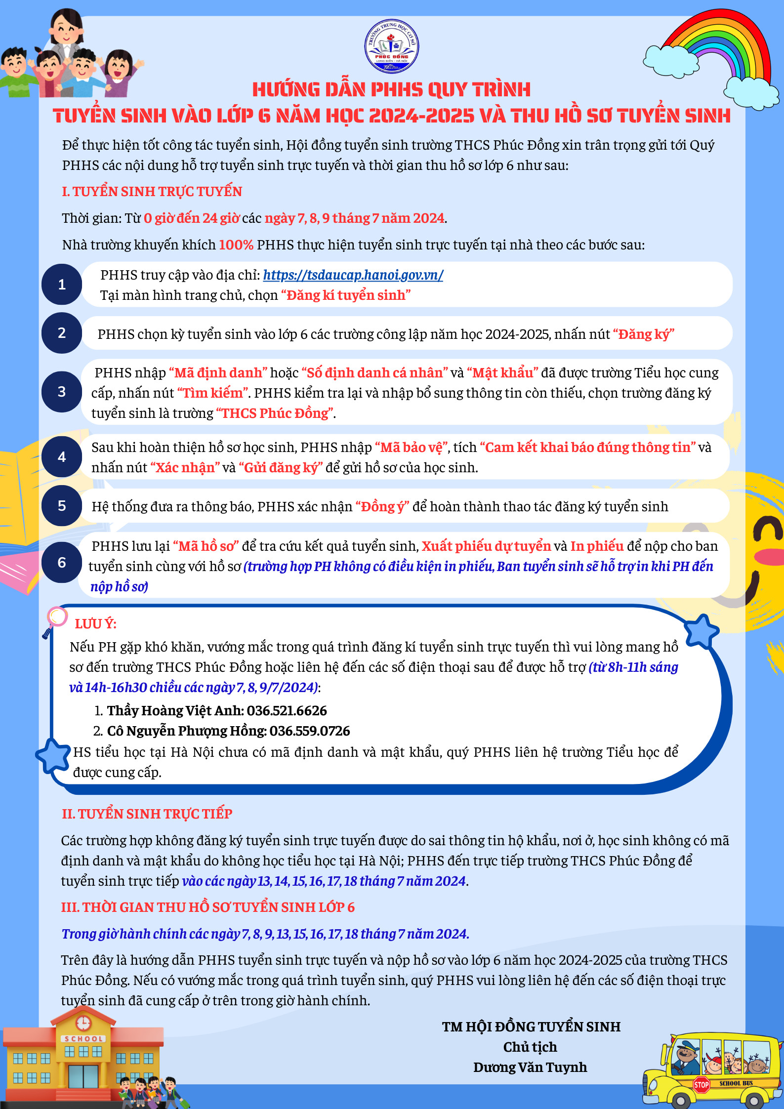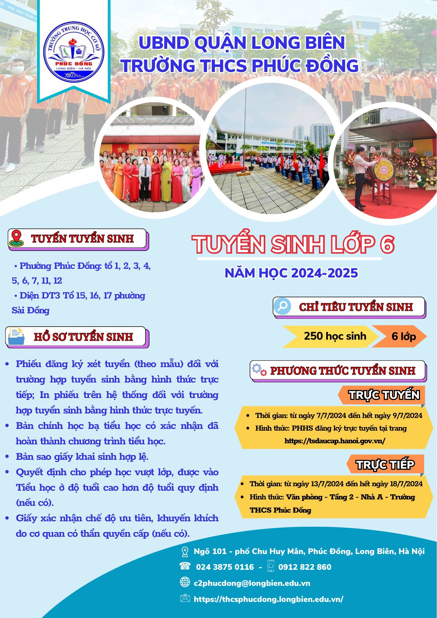 Thông báo tuyển sinh lớp 6 trường THCS Phúc Đồng năm học 2024-2025